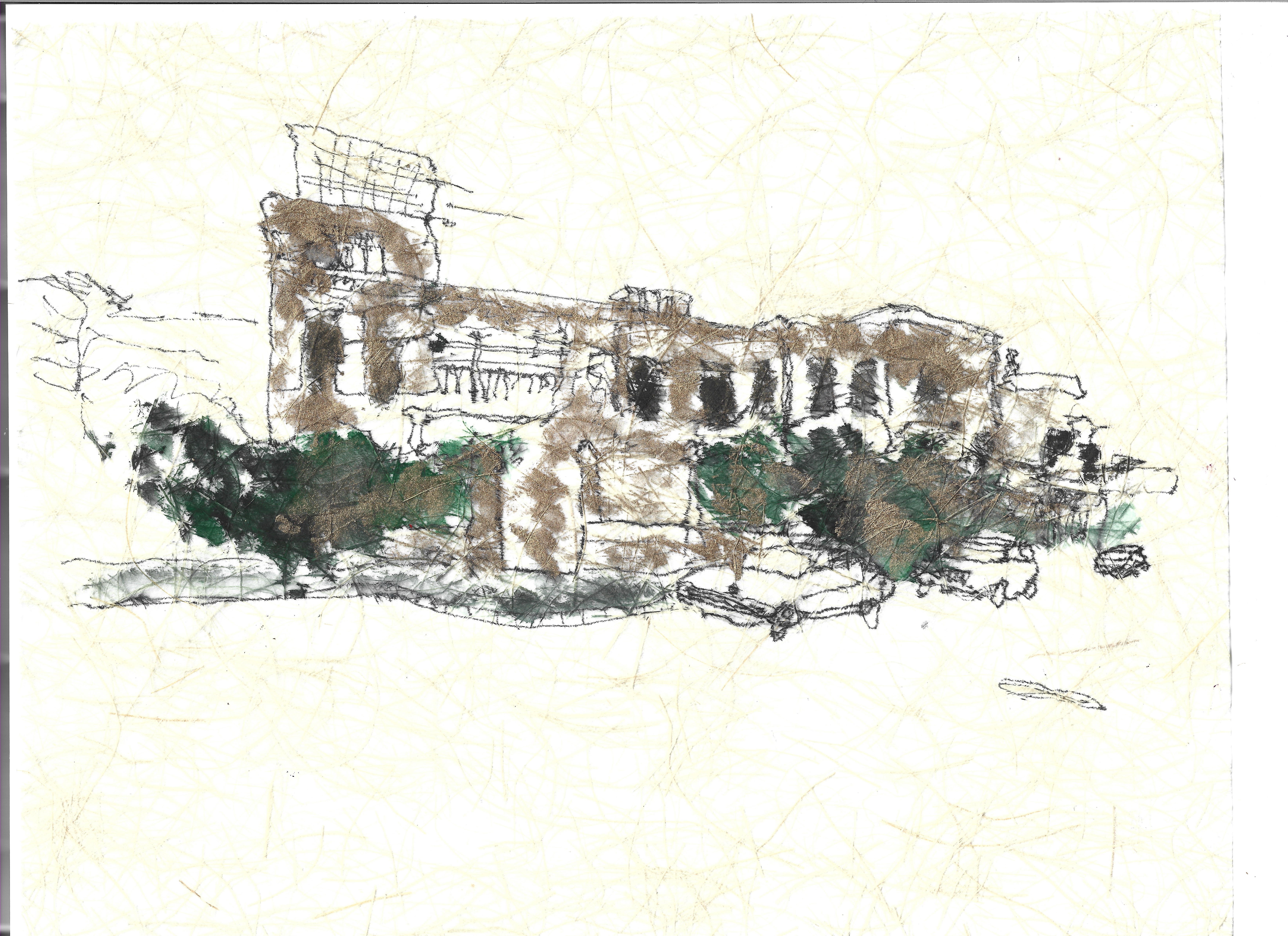 The hotel did not have stationary, only a tri-fold card with information about the hotel, its services, the wi-fi, transit in Grenoble, and the hotel breakfast. I traced the cover and rewrote what I had previously written about going to Grenoble, after reading and re-writing the A. L. Snijders story about Baalbek. Or rather Lydia Davis's translation of it. And I thought of this hotel I was in and I thought of the Palmyra Hotel in Baalbek. Naturally, I thought of Balbec as well, and of my conversation with S the previous night, where we touched on Proust and language-in-translation, and I had mentioned the Snijders book and its translation, we must have been talking about Amsterdam before. Until yesterday, I had not been to the Hotel Gloria or the Palmyra Hotel or Balbec. The first two I had encountered through TripAdvisor, the reviews of the Hotel Gloria mentioned that it was old and there was art. But it wasn't the type of old I imagined, my room's floor and walls are covered by this vinyl wood, recently applied, I am sure underneath there is some decaying wood, the floor creaks constantly. This veneer was registered as another complaint to J.