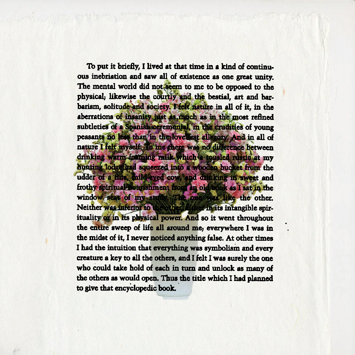 16) One can imagine the most trivial circumstance as the starting point of a great work; nothing is compromised by that triviality: the act by which the author makes it into a crucial circumstance is enough to incorporate it into his genius and his work... Every work is an occasional work: this simply means that each work has a beginning, that it begins at a certain moment in time and that that moment in time is part of the work, since without it the work would have been only an insurmountable problem, nothing more than the impossibility of writing it.