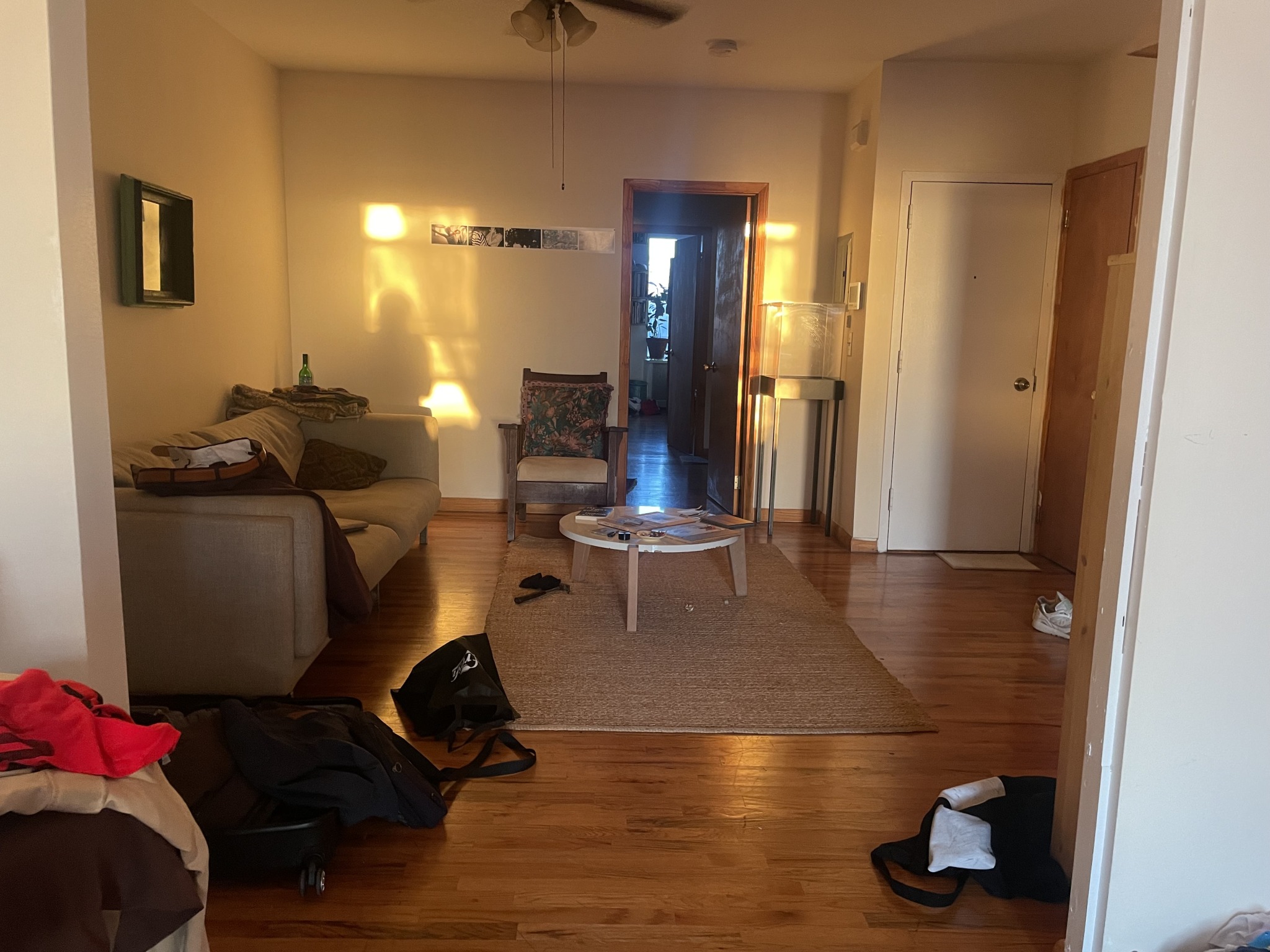 I got coffee, I worked and I read. I got a bagel, I read and I worked. C texts me and A, we met for beers and wurst. O and M and O2 and F and E arrived. I got cigarettes, smoked outside with C and A. N walked past with two friends, they sat at the opposite end of the bar. C and A left. O talked about staying over at N's place. But we went back to my place and listened to music. M2 arrived about an hour later. There were two other guys, one of them would've been M3, and I can't remember the other's name. They would leave shortly after, but everyone else would stay for a couple of hours. We listened to music and talked and used the computer. We made music and talked and used the computer. O showed me clothing and designs. O2 was on the edge of the couch, didn't talk much, just observed. I talked to M a lot. F talked to M2 a lot. I realized that dealing with people talking a lot is part of M2's job. Like an analyst. With a traveling couch.