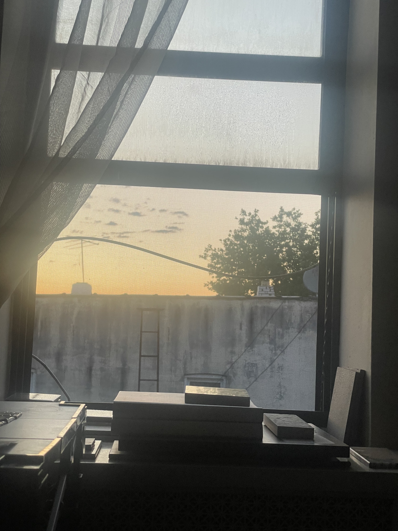 After work I met O at the wine bar. I think we each had three glasses of wine of various kinds. A dry white, a beaujolais, something similar to a Bulgarian red. And raw tuna wrapped in seaweed, with spicy aoili and jicama and sesame. And toasted bread with chicken liver mousse and a gooseberry jam. Things I can and cannot afford. Spent money so that C would not enter the picture, yet it did. But money did not leave my pocket, which created a limit. Before the wine bar O was with C, when C rode off on his moped, he said I looked like a playwright. O said that this was because of the context and because of my hair. Towards the end of our time at the wine bar, M rode up on his bike. He locked his bike. We went upstairs and drank beer with O. I talked, we all talked, I gave O a big hug because of things that O had told me, and then we went to a different bar. But we didn't go inside, we went to the bar next door. At the bar next door we had to buy drinks. Before that, M bought from M. In the bar next door I had some. Before we left I had a different abbreviation. In the bar next door I ordered a wasabi margarita. It was not good. I wanted it to be like the bloody mary at the Ukranian restaurant, spicy, with horseradish. Other people had sips. S was at our table. E was our server. We left and M and I walked down alongside the park and took more abbreviations. Then we went back to the bar. Outside the bar were many people. We went inside the bar. S was DJing. G was there. J was there. F was there. S was there. E was there. N was there. E was there. Many people were there. I discussed the situation and listened to music. I took pictures with my computer. At a certain point we went outside. Then we went to another bar, but that bar was closed. So I went to O and O and M's apartment. N and T came with us. We bought beer en route. I invited people there, specifically to their roof, and wondered if I was overstepping in that process. But it was also the best course. And it was raining. But only ever so slightly. It was misting.