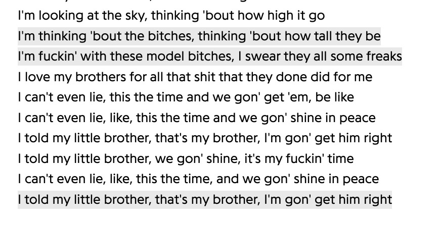 17) S asked me for a link to a mix that didn't exist. It was not recorded. I sent links to sounds and images to try to reconstruct the night. A dancehall remix of Take Care was marked by the xx guitar riff for her; different memories and associations in relation to place and time. Someone commented on a Chicken P fast mix I made (Rollin), so I looked at the top listeners profiles and found a song: sturdyyoungin - Freestyle pt.2 Ft Mizz, GE3Z & Bril. It samples DJ Nate's May Be Sum Day. I've been listening to both on repeat all day — different memories and associations in relation to place and time. Chicago. New York. Paris. I Wud If I Cud But I Can’t So I Ain’t
